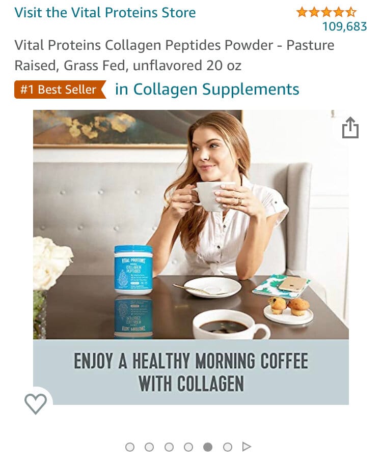 See the screenshots below comparing two product listings from Amazon’s mobile app. On the left, Onnit’s Alpha Brain has long body text on the image that is extremely difficult to read on mobile, while Vital Proteins has an image with simple text that is big enough to be read on both desktop and mobile: