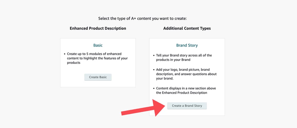 You will have two (maybe three) options, “Create Basic” or “Create a Brand Story.” Click “Create a Brand Story.”