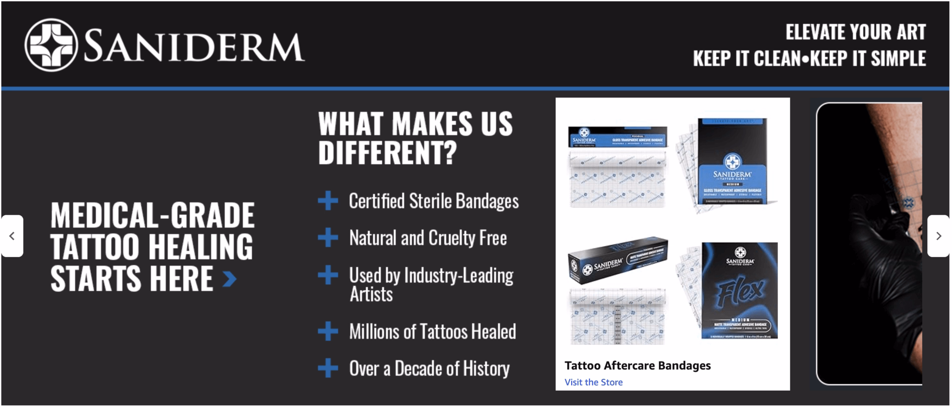 Saniderm is a global leader in wound healing and premium tattoo aftercare products. Saniderm partnered with yourAMZ to redesign their entire visual presence on Amazon, which allowed them to raise prices and increase conversion rates at the same time.